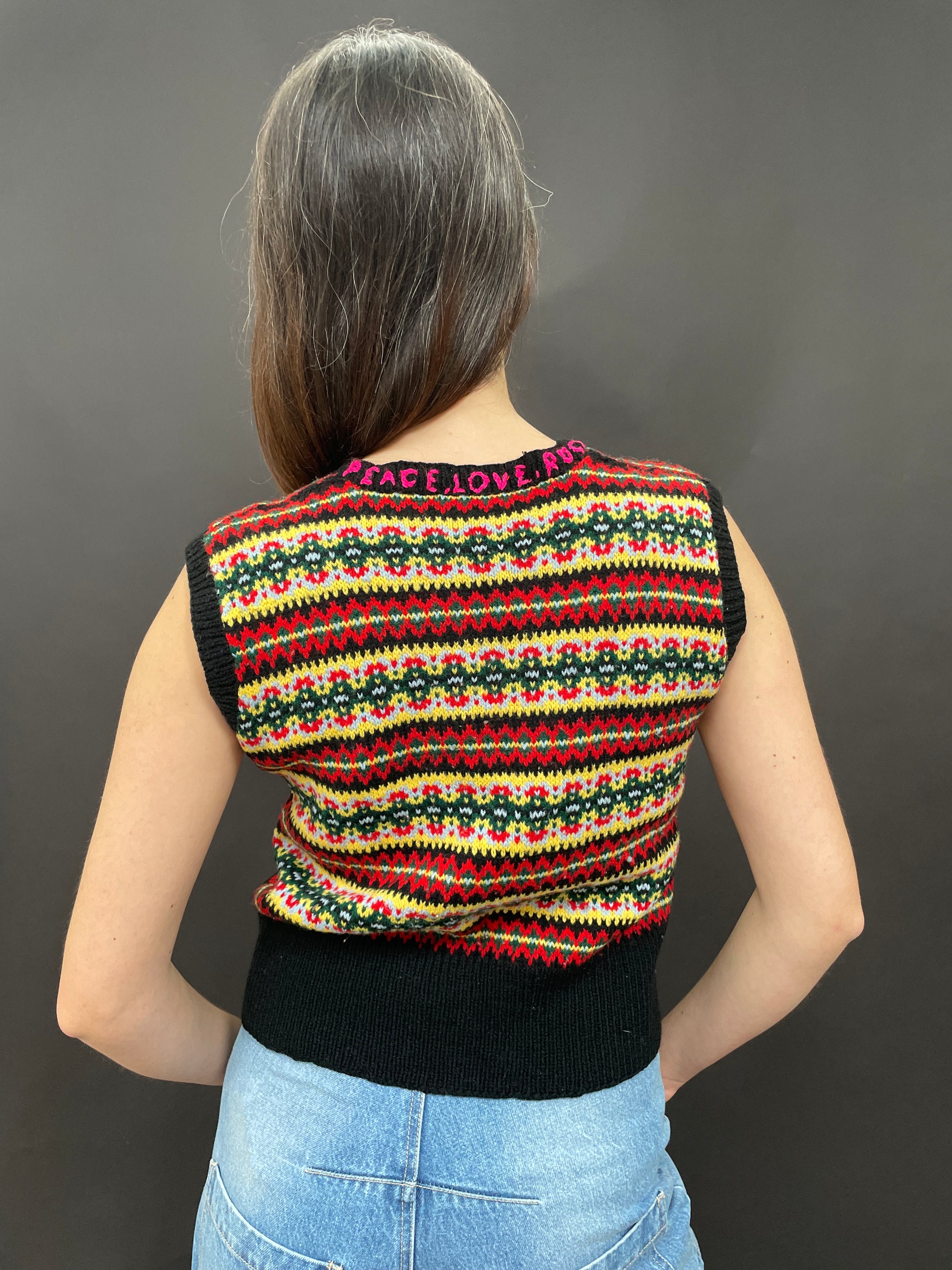 Charming vintage knit featuring hand-embroidered hem and front and back neck.